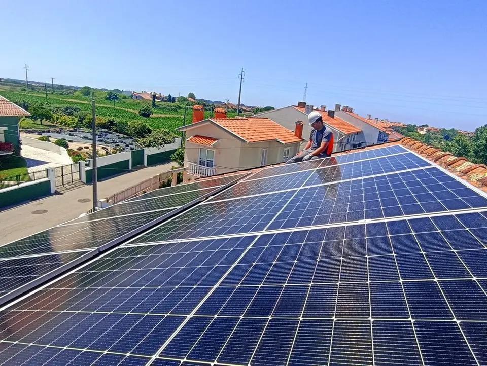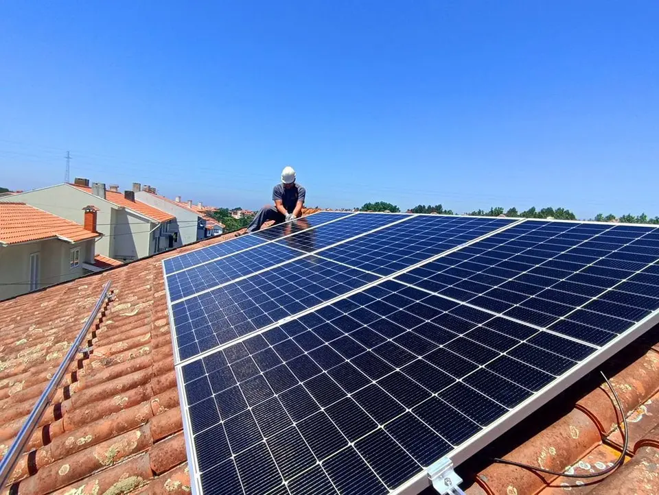 Projeto de Autoconsumo Doméstico constituído por 8 painéis solares fotovoltaicos de 570wp da Aiko (Painel + EFICIÊNTE do mundo – TOP 1), inversor da Huawei 4kw.