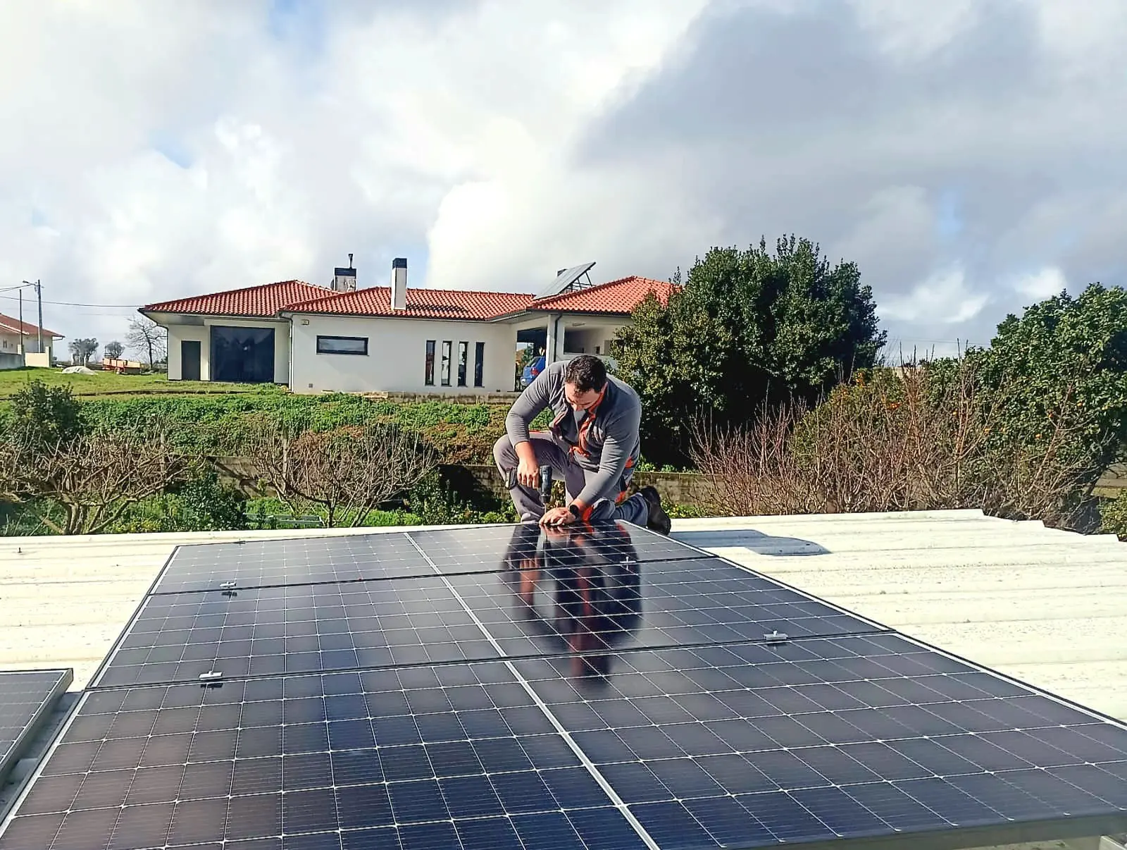 Projeto de Autoconsumo Residencial constituído por 4 painéis solares fotovoltaicos de 505wp da Aiko (Painel + EFICIÊNTE do mundo – TOP 1), inversor da SAJ 2kw.